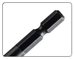 Tija hexagonală canelată previne alunecarea în mandrina de foraj sau prelungirea burghiului.